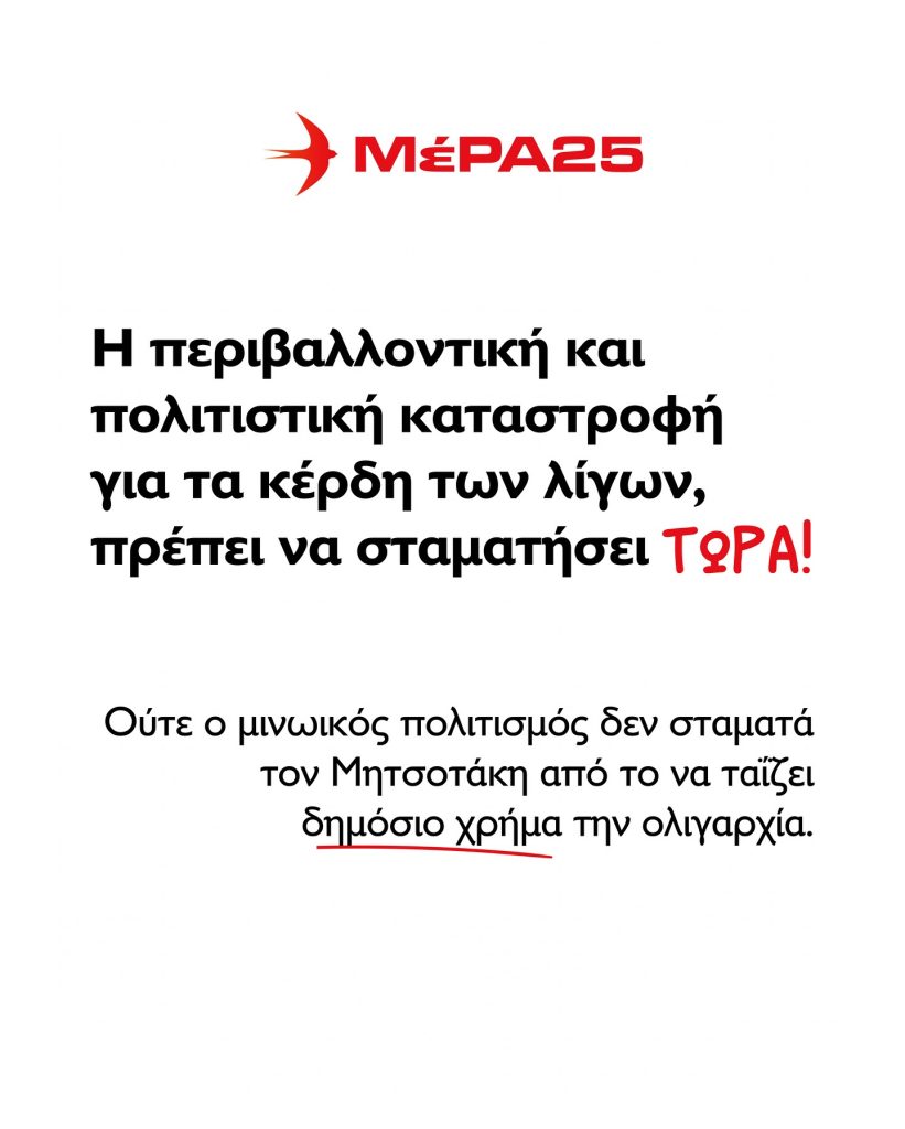 Ως ΜέΡΑ25 ήμασταν εξαρχής απέναντι στην κατασκευή αυτού του εξαμβλώματος. Η περιβαλλοντική και πολιτιστική καταστροφή για τα κέρδη των λίγων, πρέπει να σταματήσει ΤΩΡΑ!