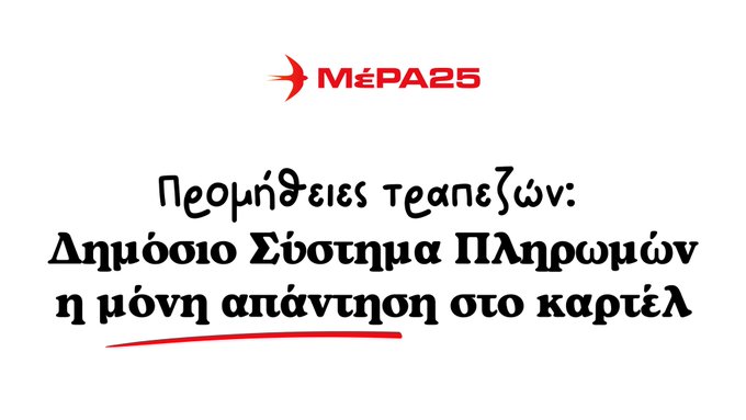 Ως ΜέΡΑ25 είχαμε καταθέσει Πρόταση Νόμου με ολοκληρωμένο και άμεσα εφαρμόσιμο σχέδιο δημιουργίας Δημόσιου Συστήματος Πληρωμών πάνω στο Taxis, με απόλυτα δωρεάν συναλλαγές, για να αναπνεύσουν τα νοικοκυριά αλλά και οι μικρομεσαίες επιχειρήσεις, όπου οι τραπεζικές προμήθειες του 3%, 5% μέχρι και 10% για κάθε ηλεκτρονική συναλλαγή, τις γονατίζουν.