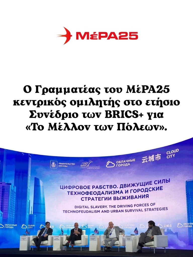 Σήμερα, Τετάρτη 17 Σεπτέμβρη, ο Γιάνης Βαρουφάκης θα μιλήσει στο ετήσιο Συνέδριο των BRICS+, που φέτος διεξάγεται στη Μόσχα, με τίτλο ομιλίας: